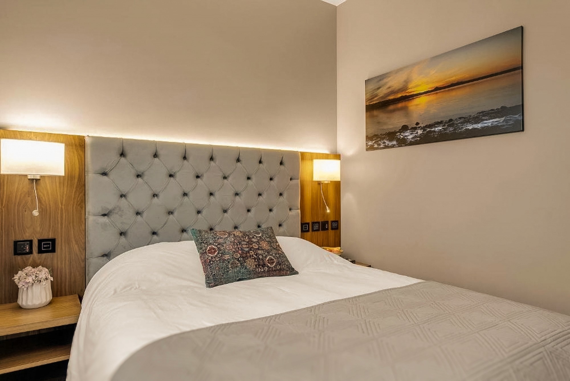 Hardwood or parquet floors, hypoallergenic beds, soft linen, and a cozy atmosphere for rest.